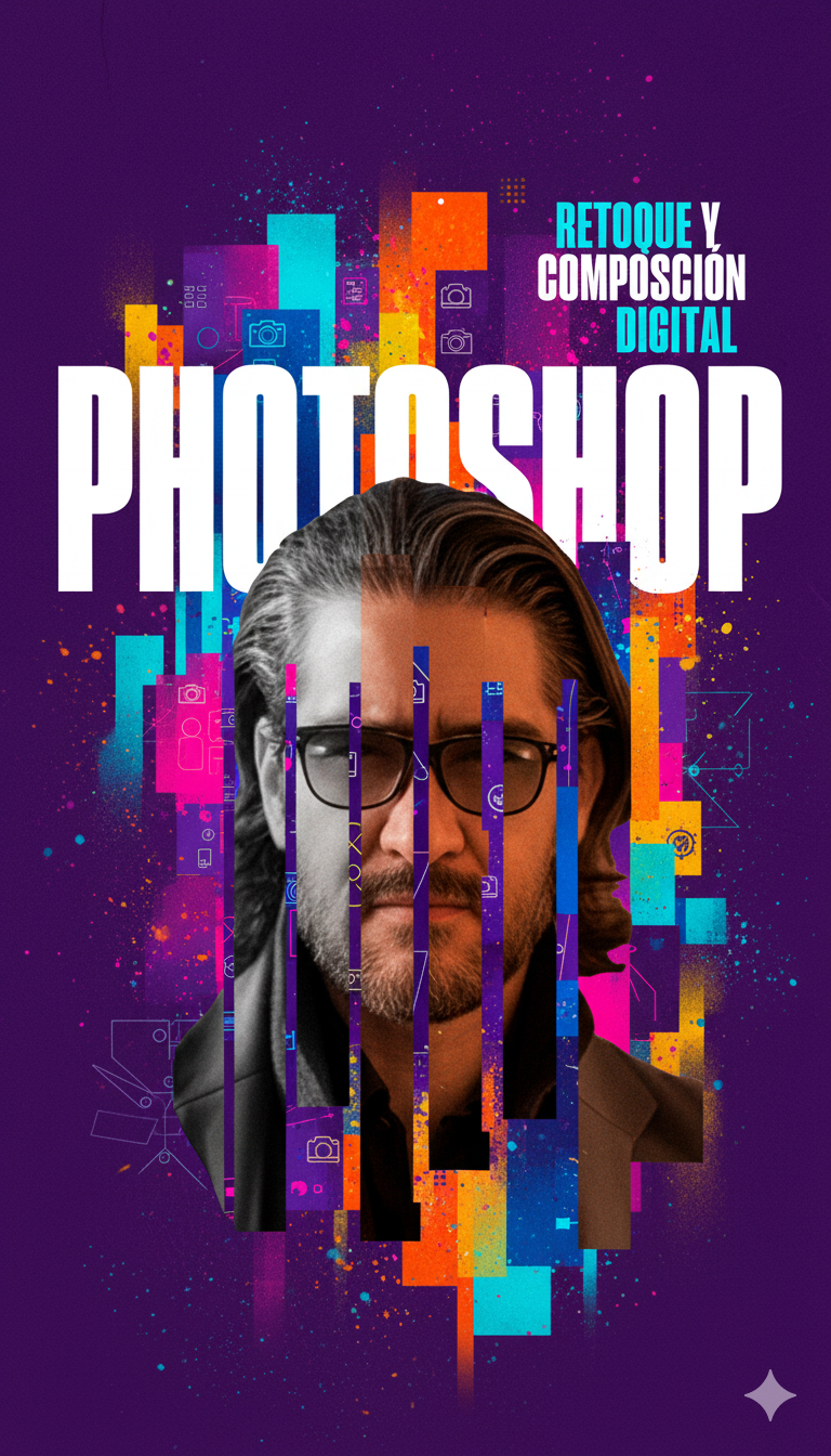 Aprende a mejorar, manipular y transformar imÔgenes con Photoshop. Desde ajustes bÔsicos hasta montajes complejos y fotomanipulación con IA generativa.